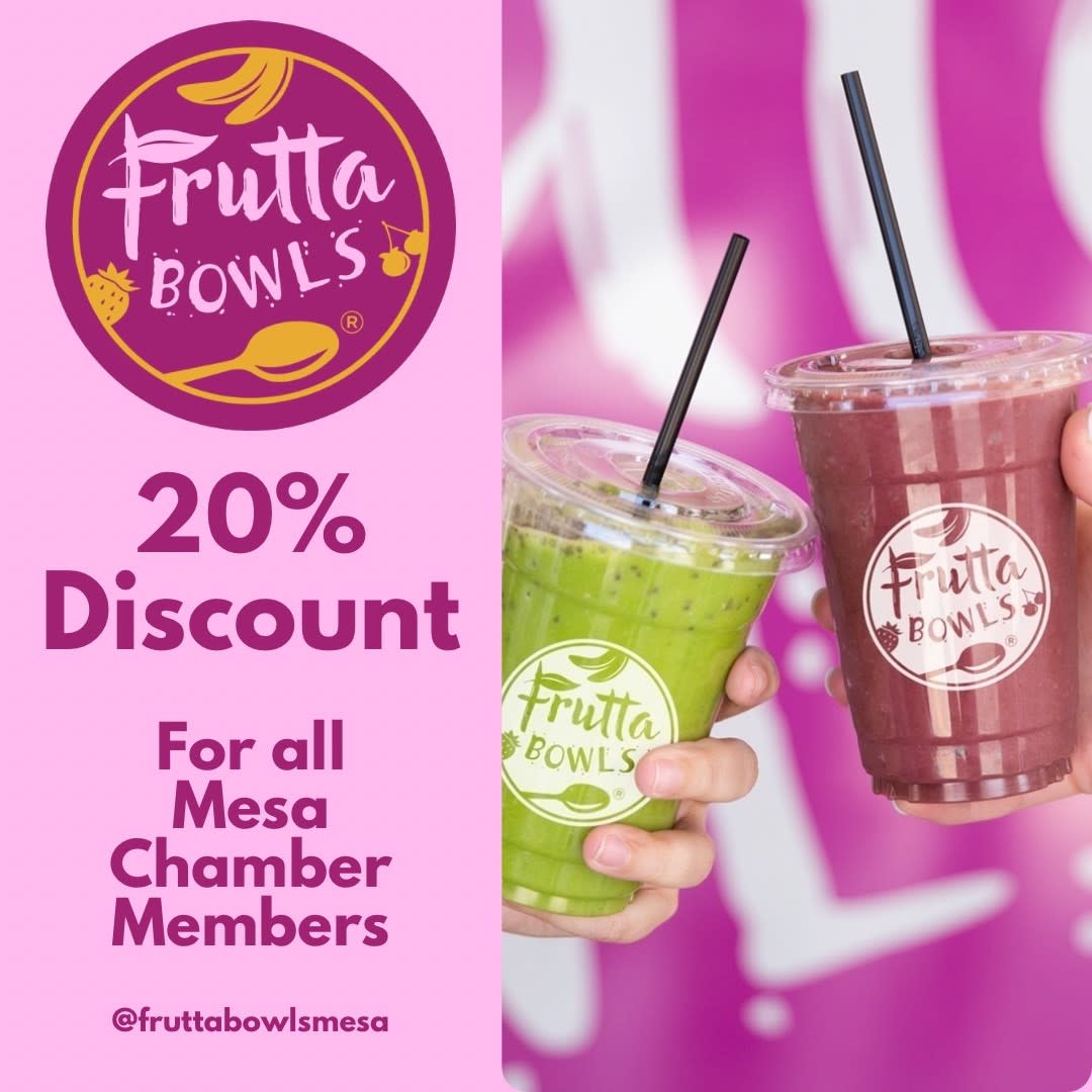Come out and enjoy Frutta Bowls 20% off to all Chamber members!!