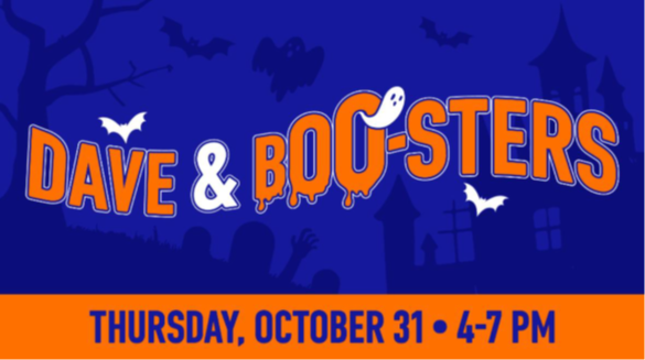 Celebrate Halloween at Dave & Boo-ster’s on Thursday, October 31st from 4:00pm - 7:00pm. If you are looking for wicked good family fun, then we are the place you want to go! We carved out the perfect event on Halloween night for all ages. $10 Ticket Includes*: $15 Power Card with Unlimited Video Game Play, costume contest for a chance to win FREE GAMES FOR ONE YEAR, candy scavenger hunt, boo-tiful crafts, and more spooky surprises! *Excludes Additional Fees Did I mention that the first 25 guests to purchase tickets get a FREE swag bag?