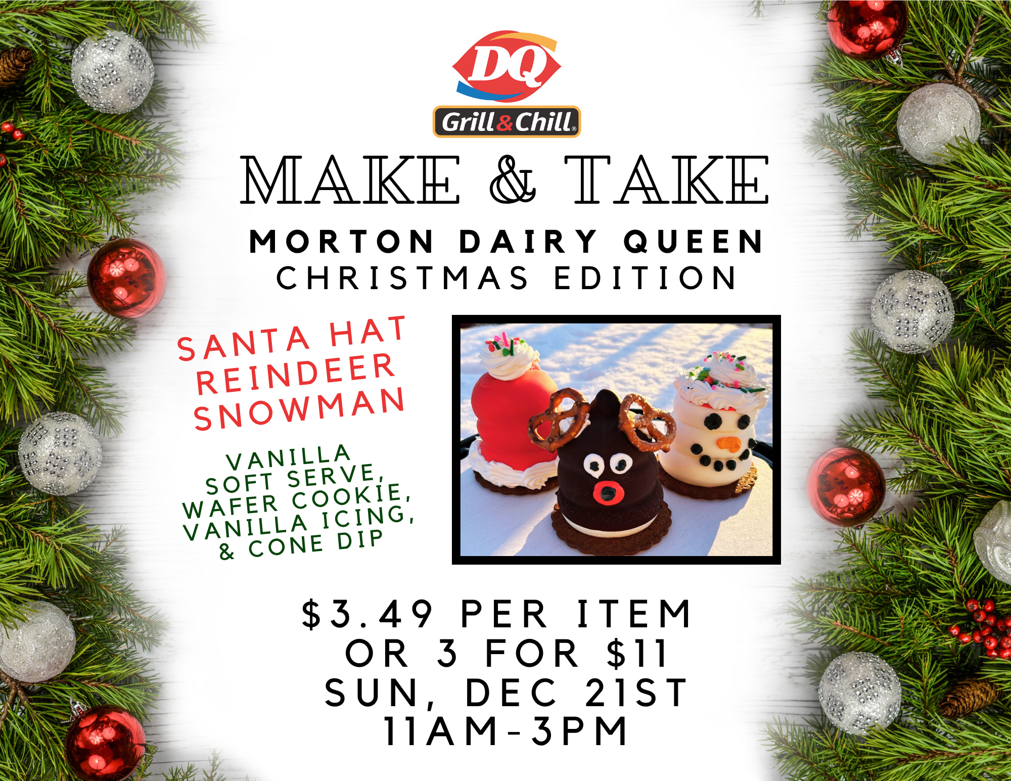 Come make this adorable Christmas Trio of sweet, little holiday characters! $3.49 each OR $11 for all 3! Great family friendly activity! We will have the rainbow of frostings & tips out for kids to customize their snowmen to their liking! Glove up and join them! Come make a memory at your local DQ!