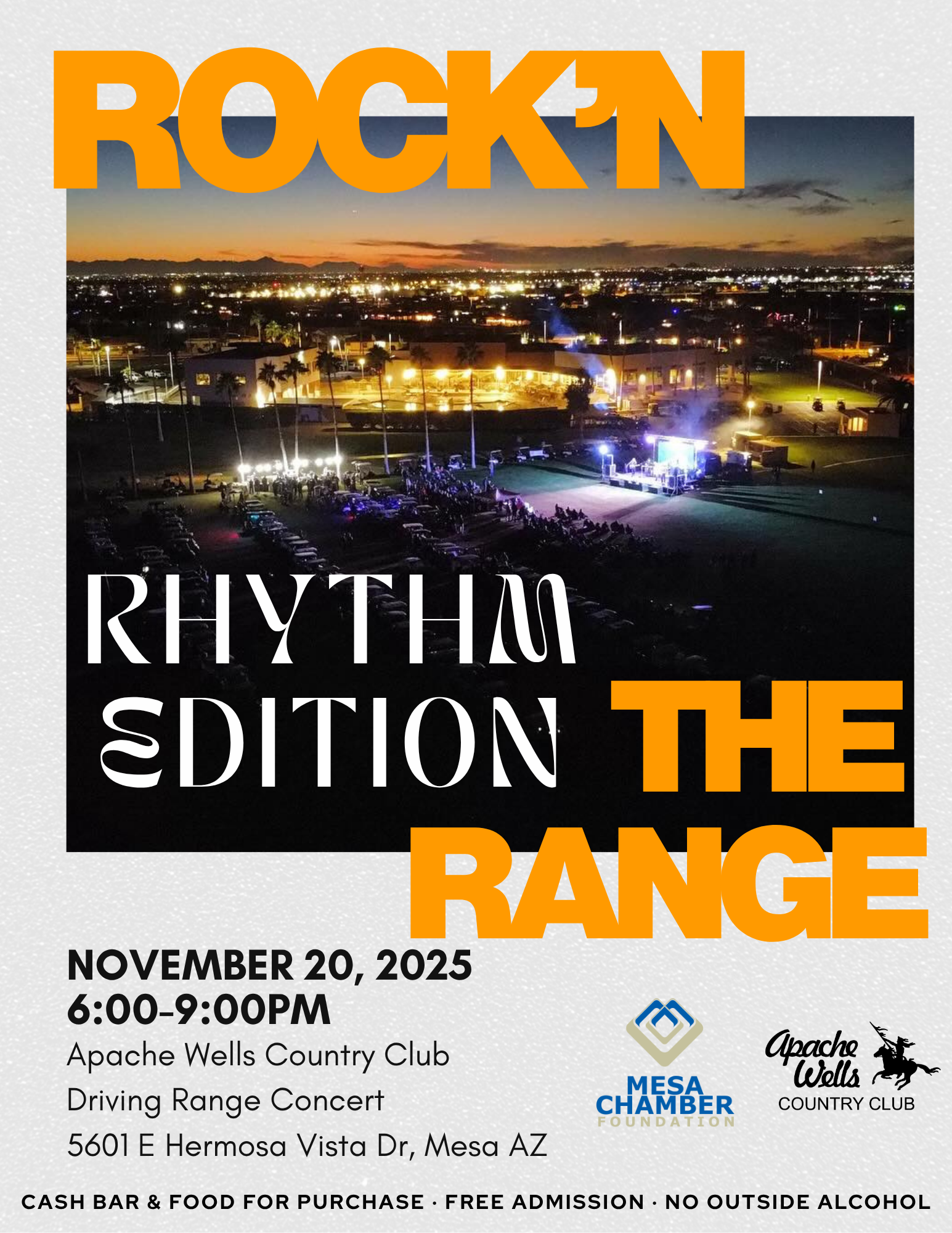 📅 November 20, 2025 ⏰ 6:00 PM – 9:00 PM 📍 Driving Range Concert – 5601 E Hermosa Vista Dr., Mesa, AZ 🎟 FREE ADMISSION! 🍹 Cash bar – No outside alcohol