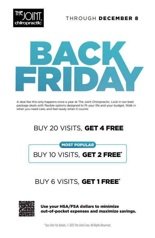 Walk in today or visit thejoint.com/backfriday or https://www.thejoint.com/arizona/mesa/mesa-gateway-48062?y_source=1_MTAwMDM0MDc0OC03MTUtbG9jYXRpb24ud2Vic2l0ZQ%3D%3D for details.